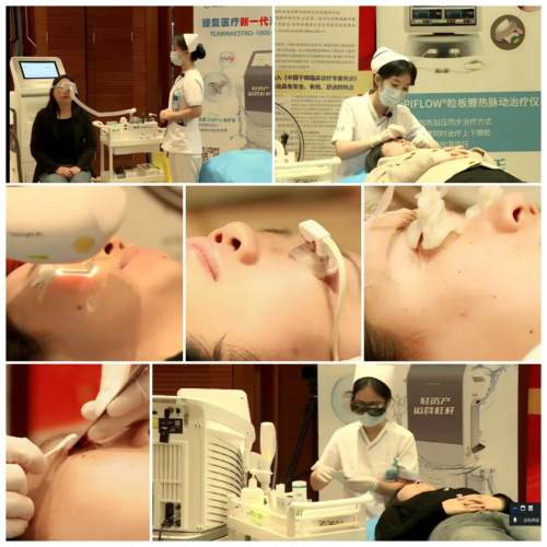 在干眼物理治疗时段,李玲、谭兴歌、王祎、刘淑慧分别带来《睑板腺理疗(Spa+深度清洁)》、《强脉冲光治疗流程》、《lipiFlow治疗流程》、《手持热脉动治疗流程》、《液脉动治疗流程》实操直播演示。