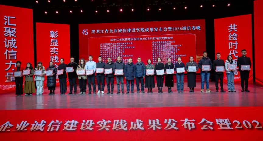 为深入贯彻落实省委省政府关于社会信用体系建设的决策部署,生动展现龙江诚信建设丰硕成果,以诚信文化赋能营商环境优化,2026年2月3日,黑龙江省诚信建设促进会在哈尔滨广播电视台举办“黑龙江省企业诚信建设实践成果发布会暨2026诚信春晚”。