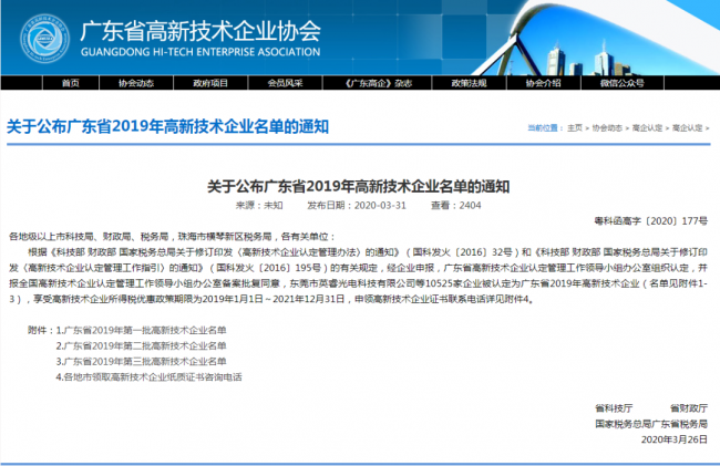 广东省高新技术企业协会发布了《关于公布广东省2019年高新技术企业名单的通知》百家医道位列其中